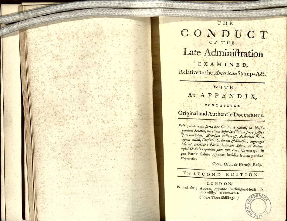 | Title | The conduct of the late administration examined relative to the American Stamp-act : with an appendix containing original and authentic documents |