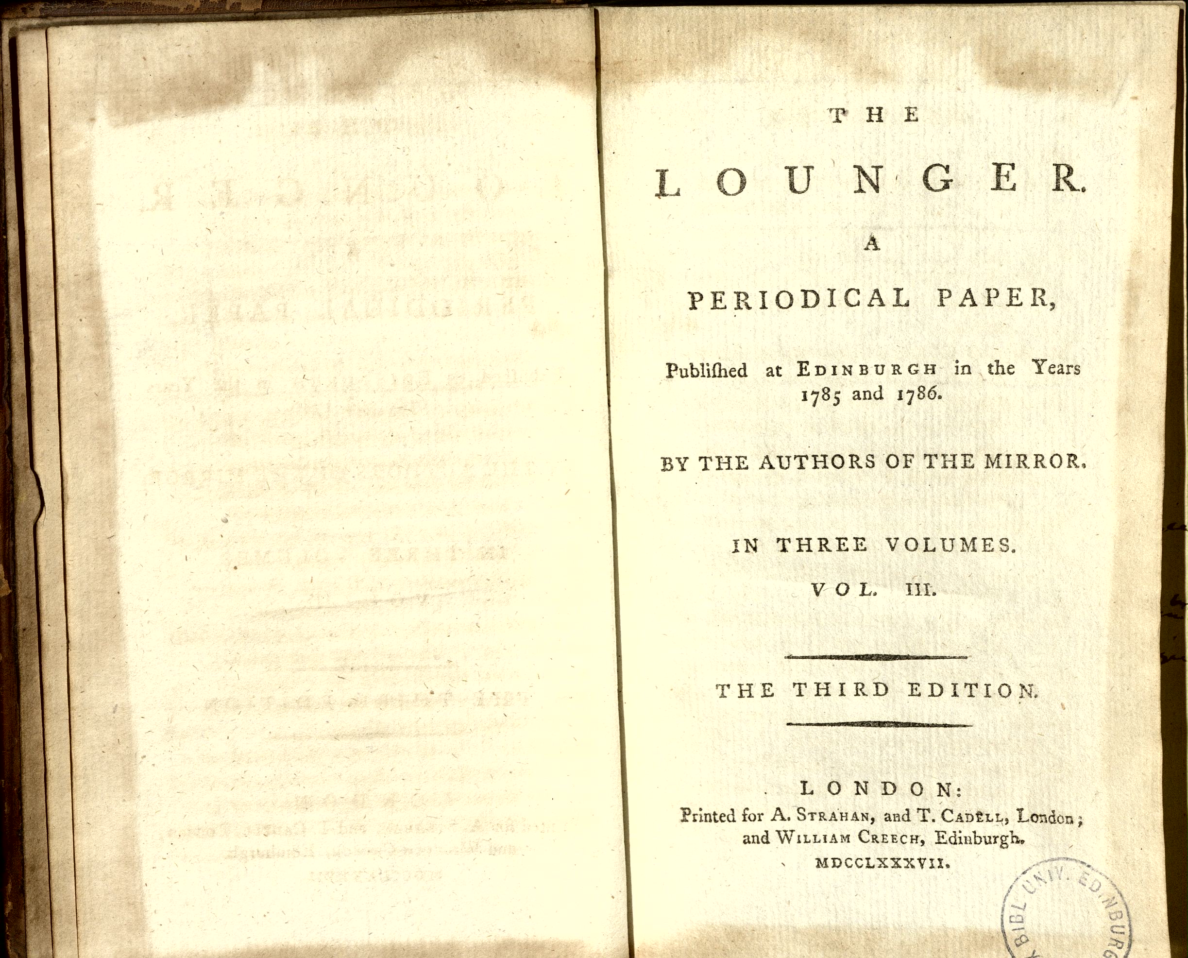 | Title | The Lounger : a periodical paper, published at Edinburgh in the years 1785 and 1786 |
