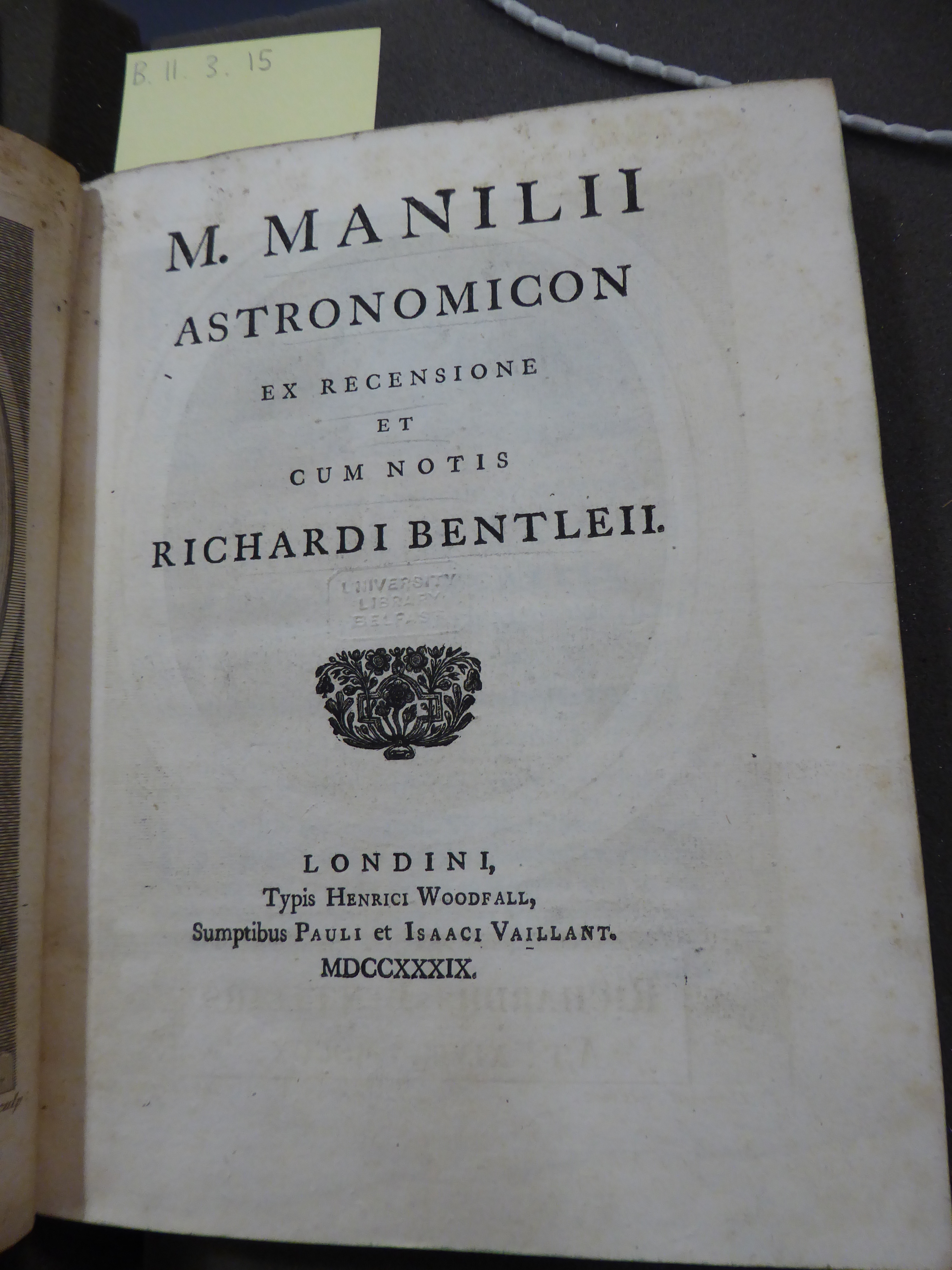 | Title | M. Manilii Astronomicon ex recensione et cum notis Richardi Bentleii |
