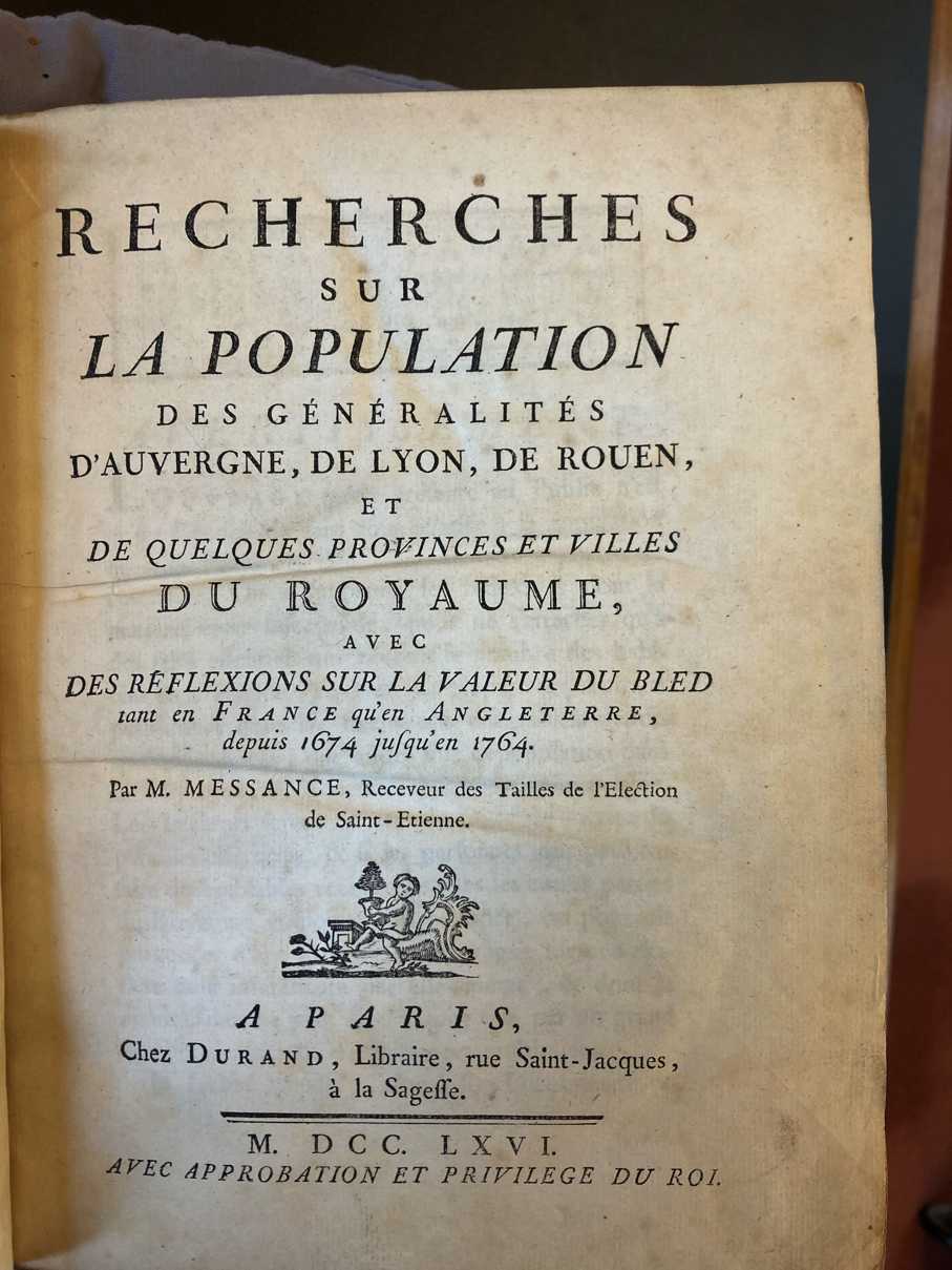 | Title | Recherches sur la population des généralitiés d'Auvergne, de Lyon, de Rouen, et de quelques provinces et villes du royaume, avec des refléxions sur la valeur du bled tant en France qu'en Angleterre, depuis 1674 jusqu'en 1764 |
