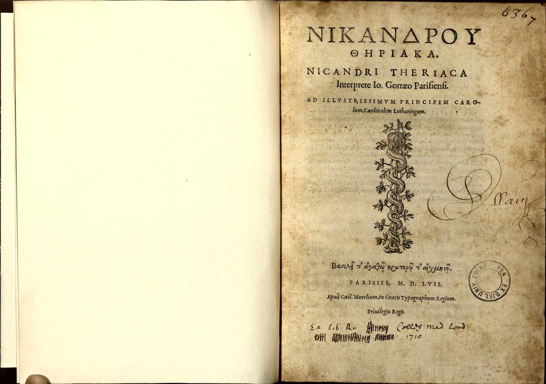 | Title | Nicandri Theriaca interprete lo. Gorrae parisiense |