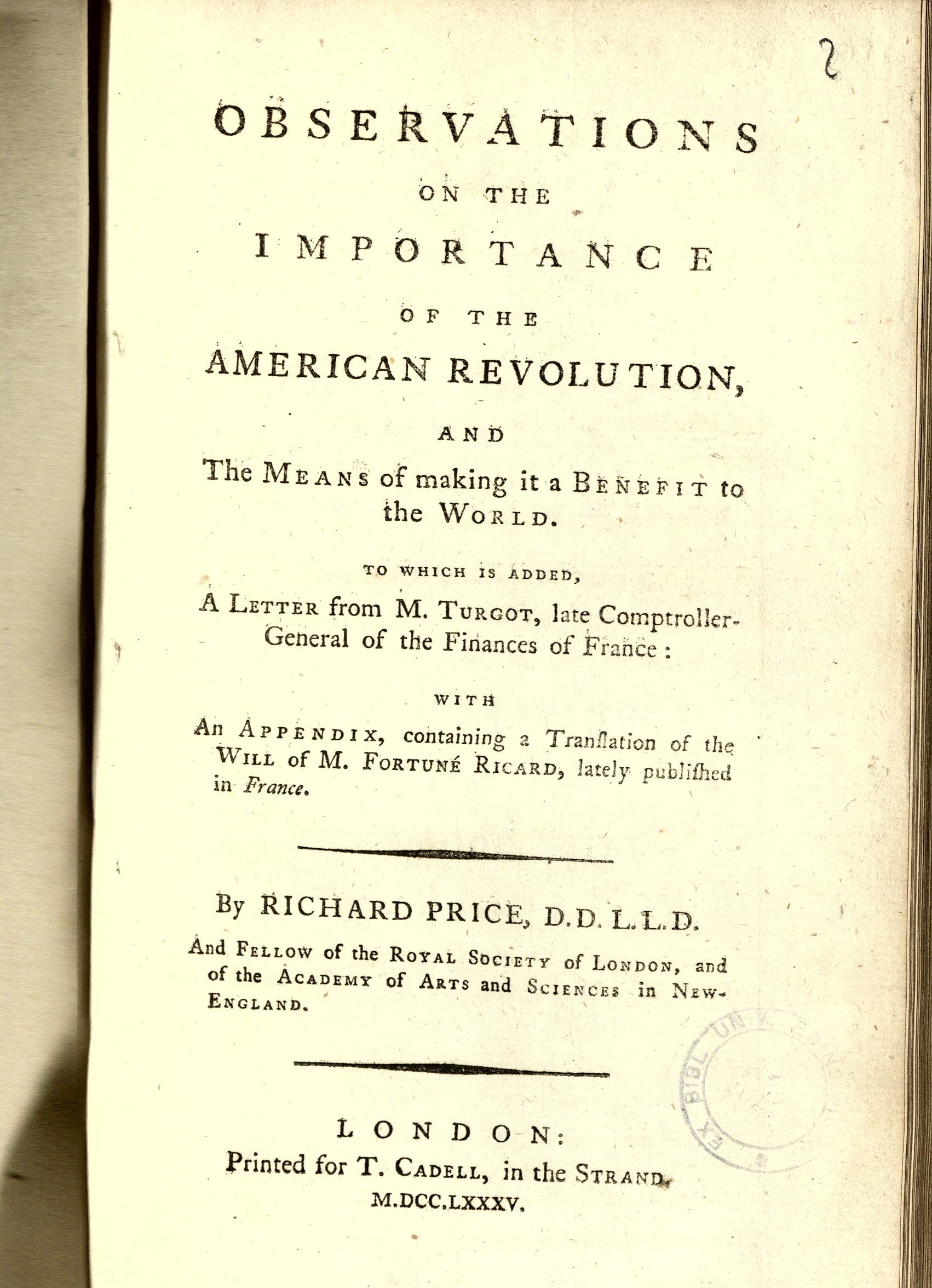 | Title | Observations on the importance of the American revolution and the means of making it a benefit to the world : to which is added, A letter from M. Turgot ... |