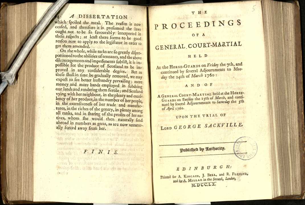 | Title | The proceedings of a general court-martial held at the Horse-Guards on Friday the 7th, and continued by several Adjournments to Monday the 24th of March 1760 : and of a general court-martial held at the Horse-Guards on Tuesday the 25th of March, and continued by several Adjournments to Saturday the 5th of April 1760. Upon the trial of Lord George Sackville. |