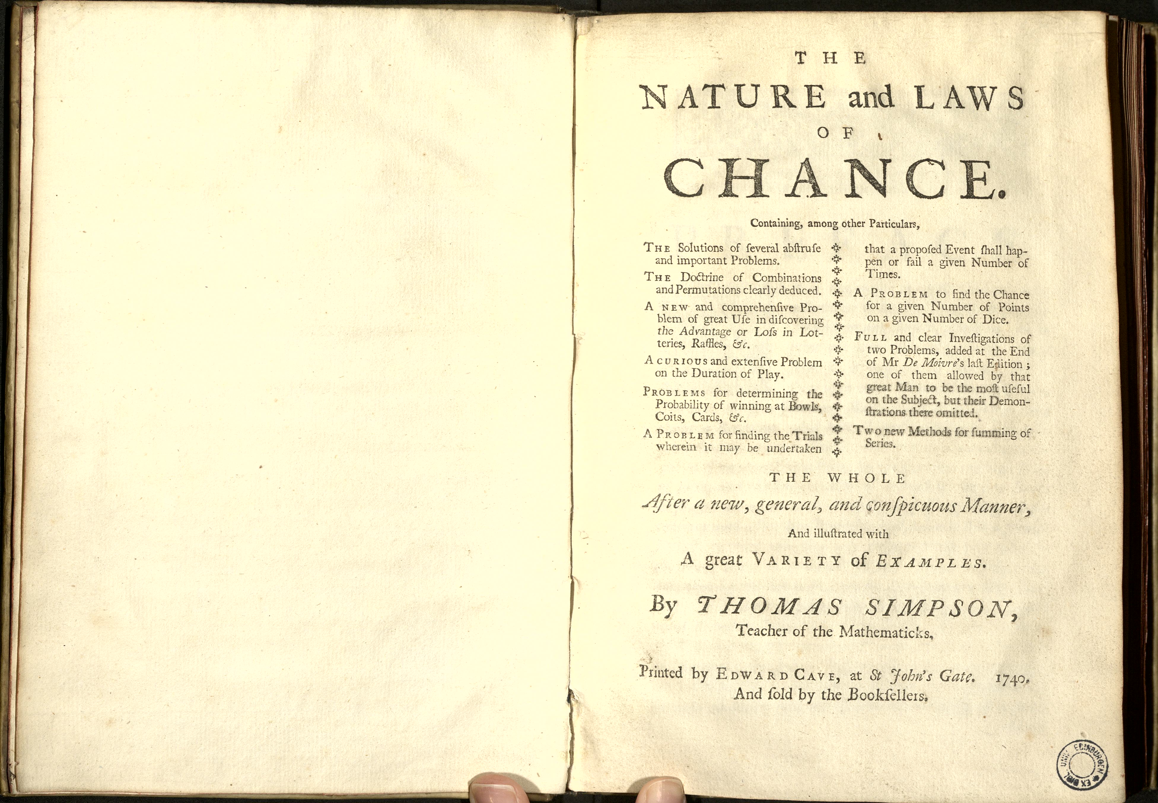 | Title | The nature and laws of chance : containing, among other particulars, the solutions of several abstruse and important problems ... : the whole after a new , general, and conspicuous manner : and illustrated with a great variety of examples |