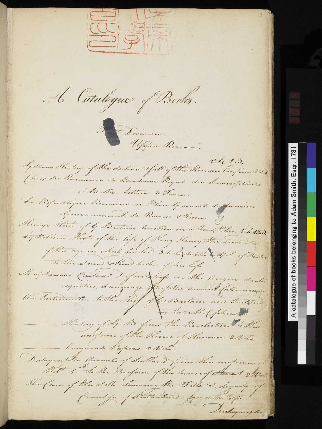 | Title | A catalgue [sic] of books belonging to Adam Smith, Esqr. 1781 |