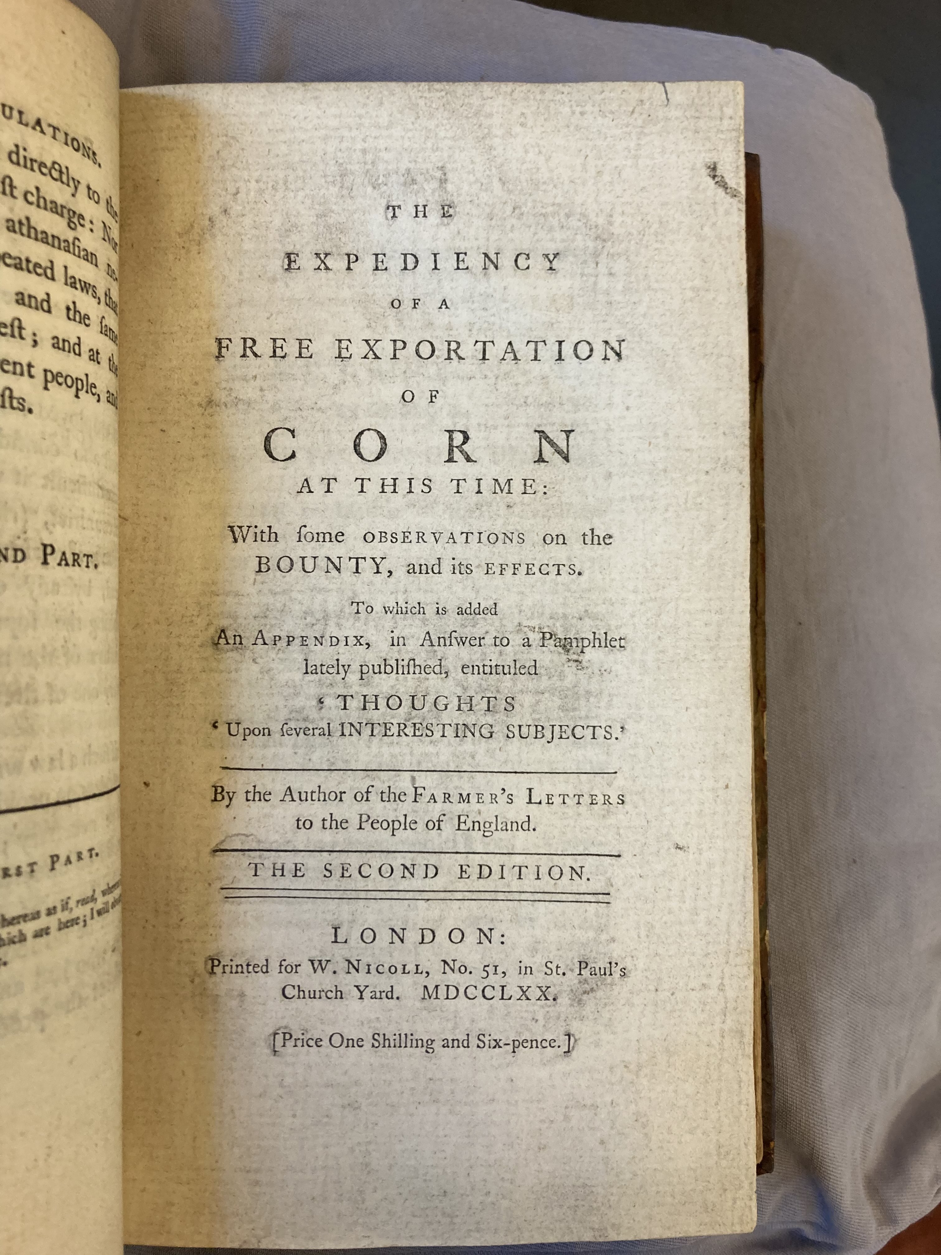 | Title | The expediency of a free exportation of corn at this time : with some observations on the bounty, and its effects : to which is added an appendix, in answer to a pamphlet lately published, entitled 'Thoughts upon several interesting subjects' |