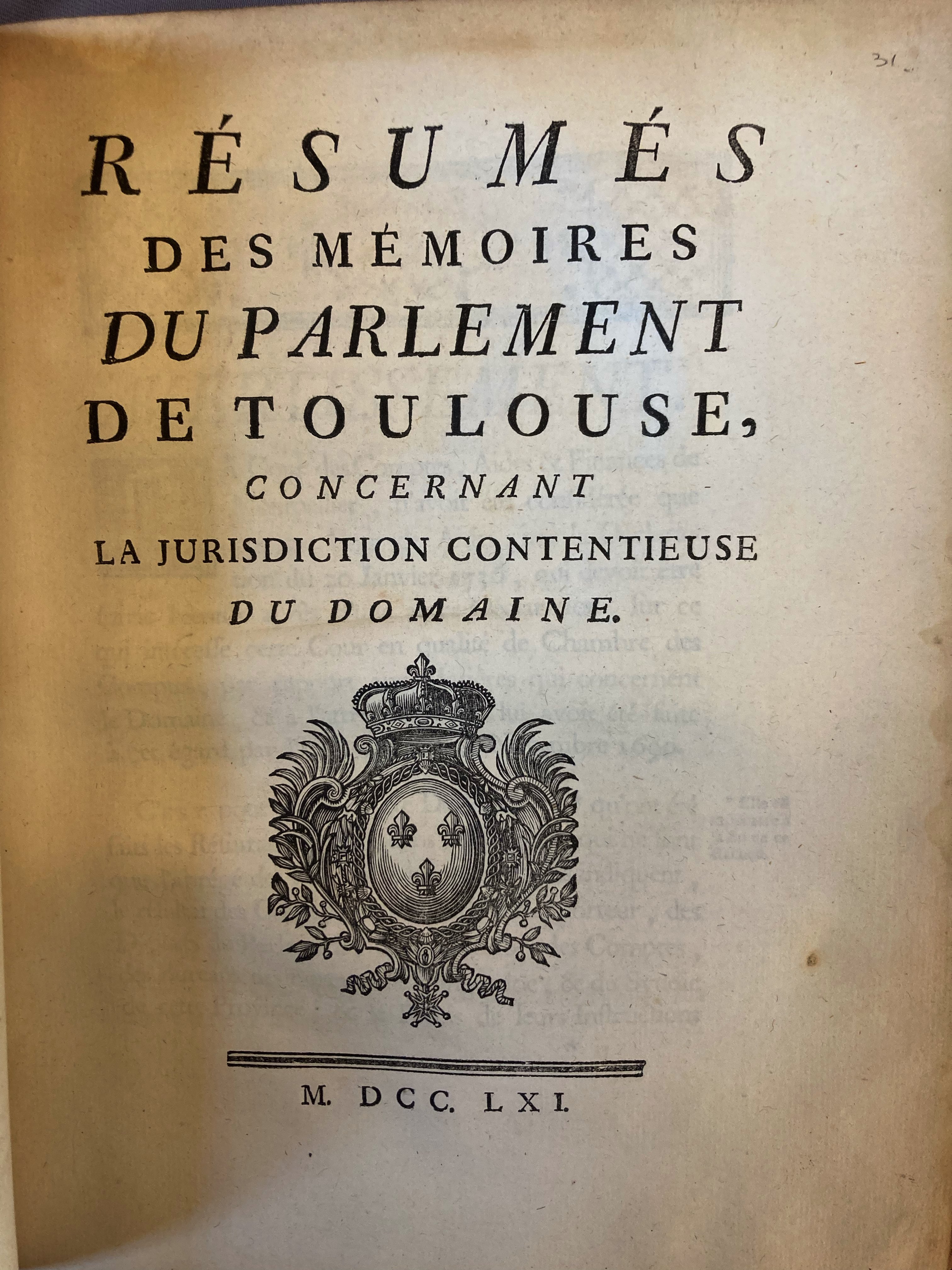 | Title | Résumés des mémoires du parlement de Toulousse, concernant la jurisdiction contentieuse du domaine |