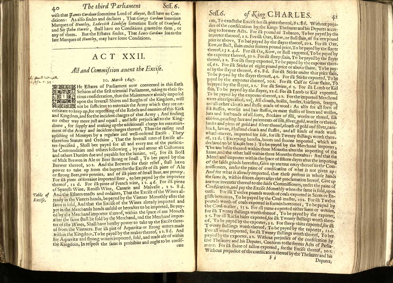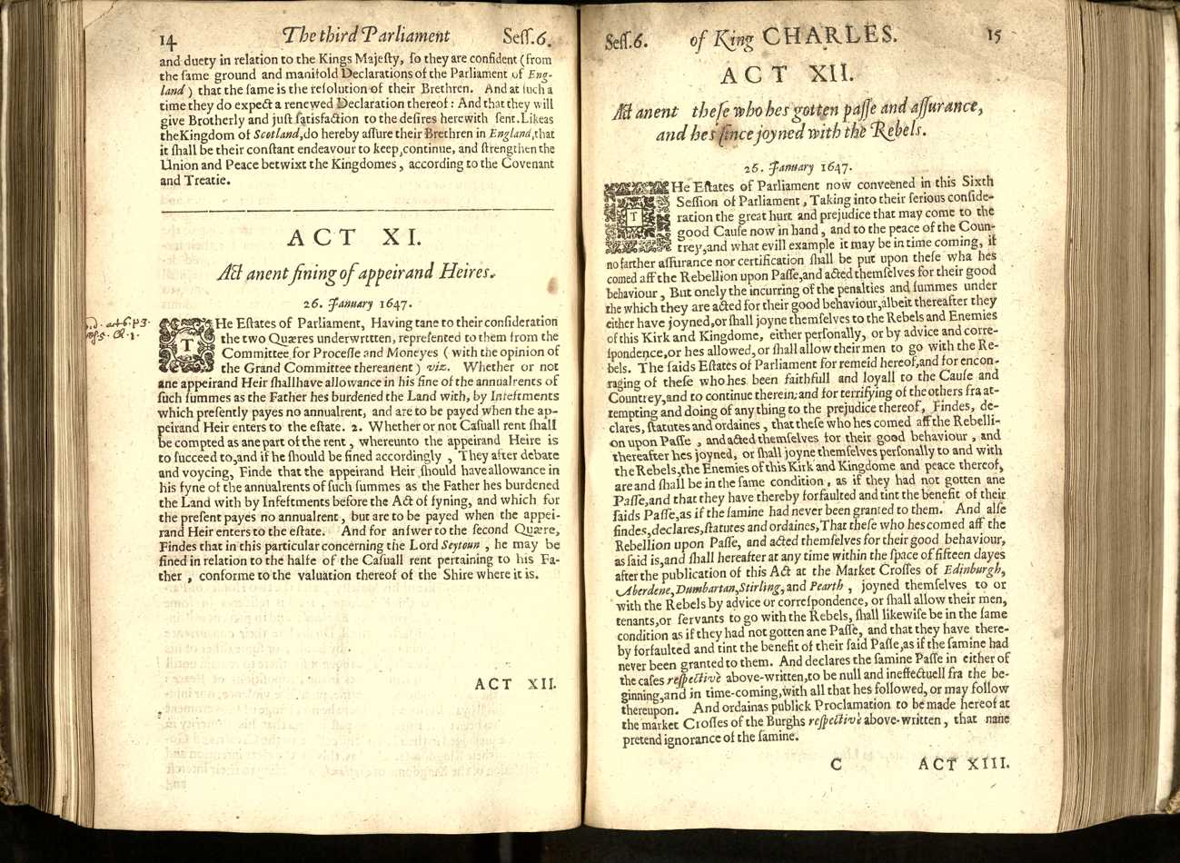 | Title | Acts done and past in the sixth session of the first triennial Parliament of our Soveraigne Lord Charles, by the grace of God King of Scotland, England, France and Ireland, Defender of the Faith : holden at Edinburgh beginning the third of November 1646 and ending the twenty seventh of March 1647. |