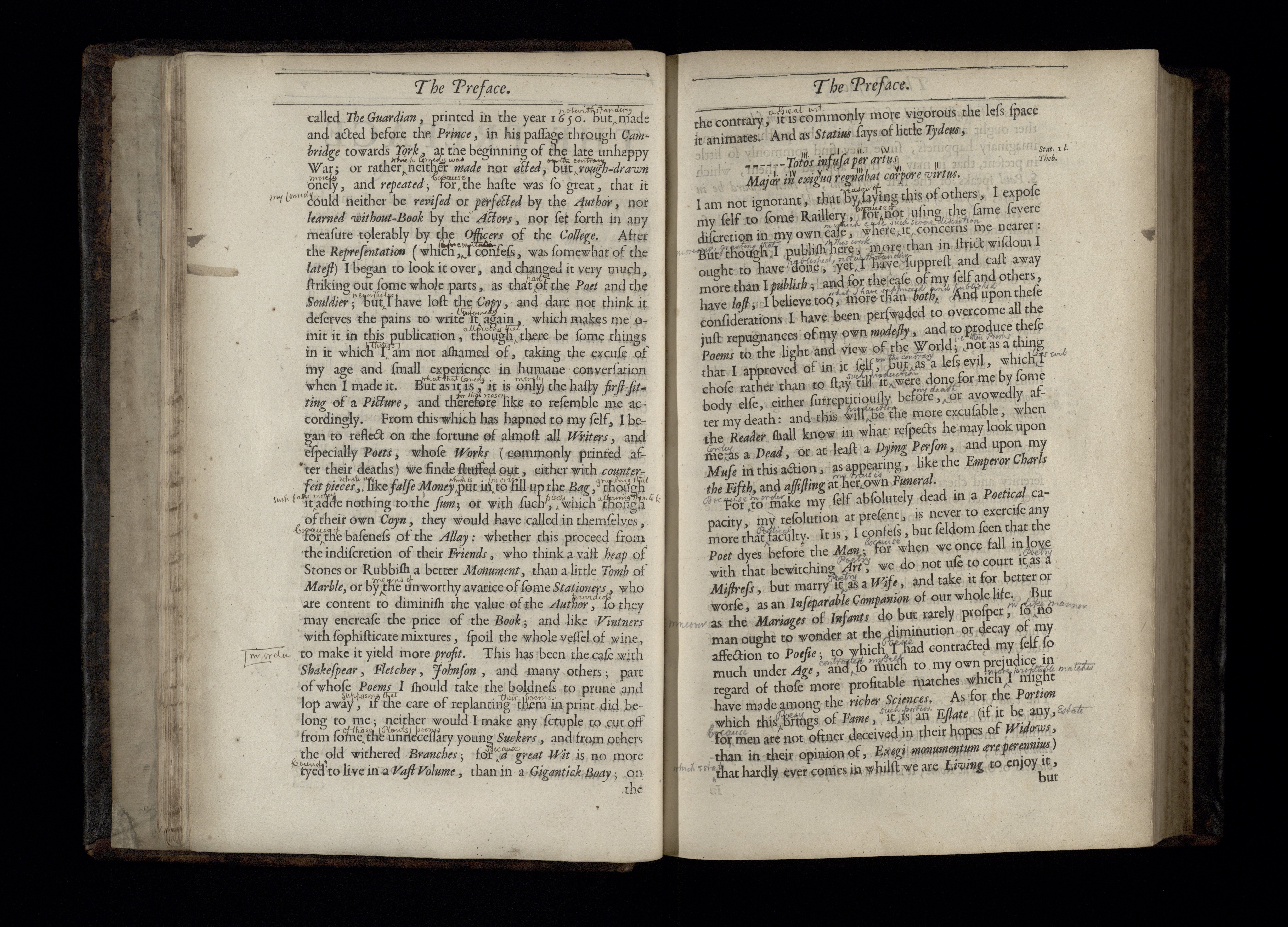 | Marginalia | [text] title page "Henry (Mary?) Seton", first to fifth pages of Preface, Miscellanies The Motto 1-5, 9-10, Pindarique Odes Preface, verso of lower cover. [line] Miscellanies: The Motto 4-7, 16-18, Pindarique Odes Preface. Paper inserted. |