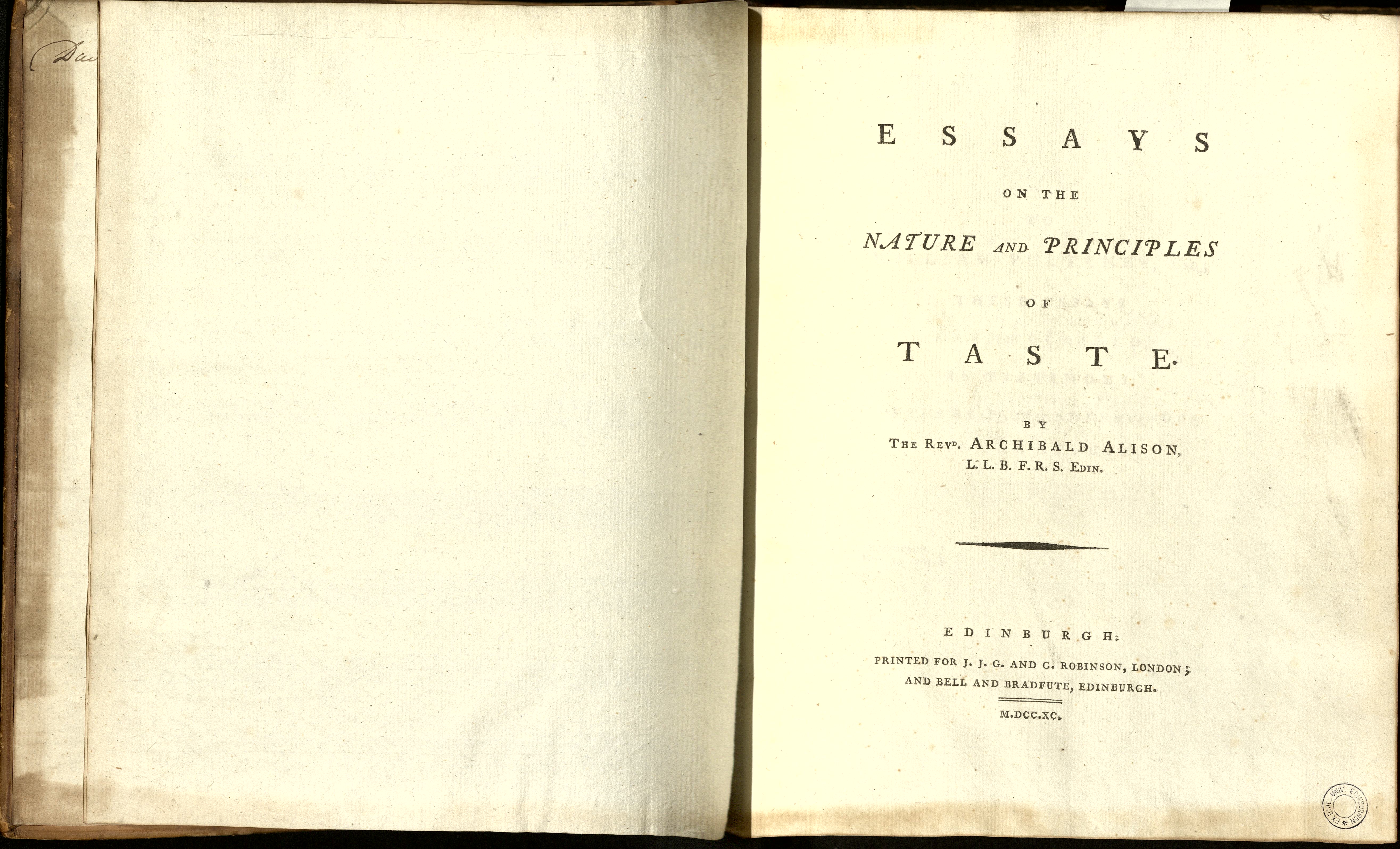 | Title | Essays on the nature and principles of taste : by the Revd. Archibald Alison, L.L.B.F.R.S. |