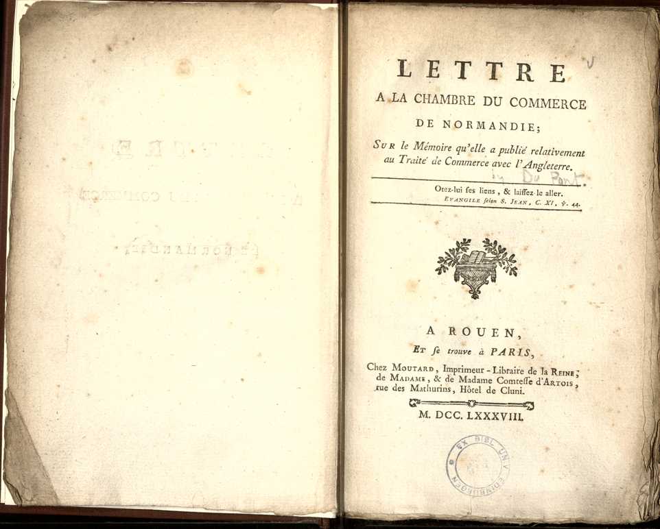 | Title | Lettre a la Chambre du commerce de Normandie : sur le mémoire qu'elle a publié relativement au traité de commerce avec l'Angleterre |