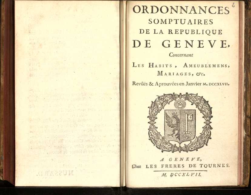 | Title | Ordonnances somptuaires de la république de Genevè : concernant les habits, ameublemens, mariages |